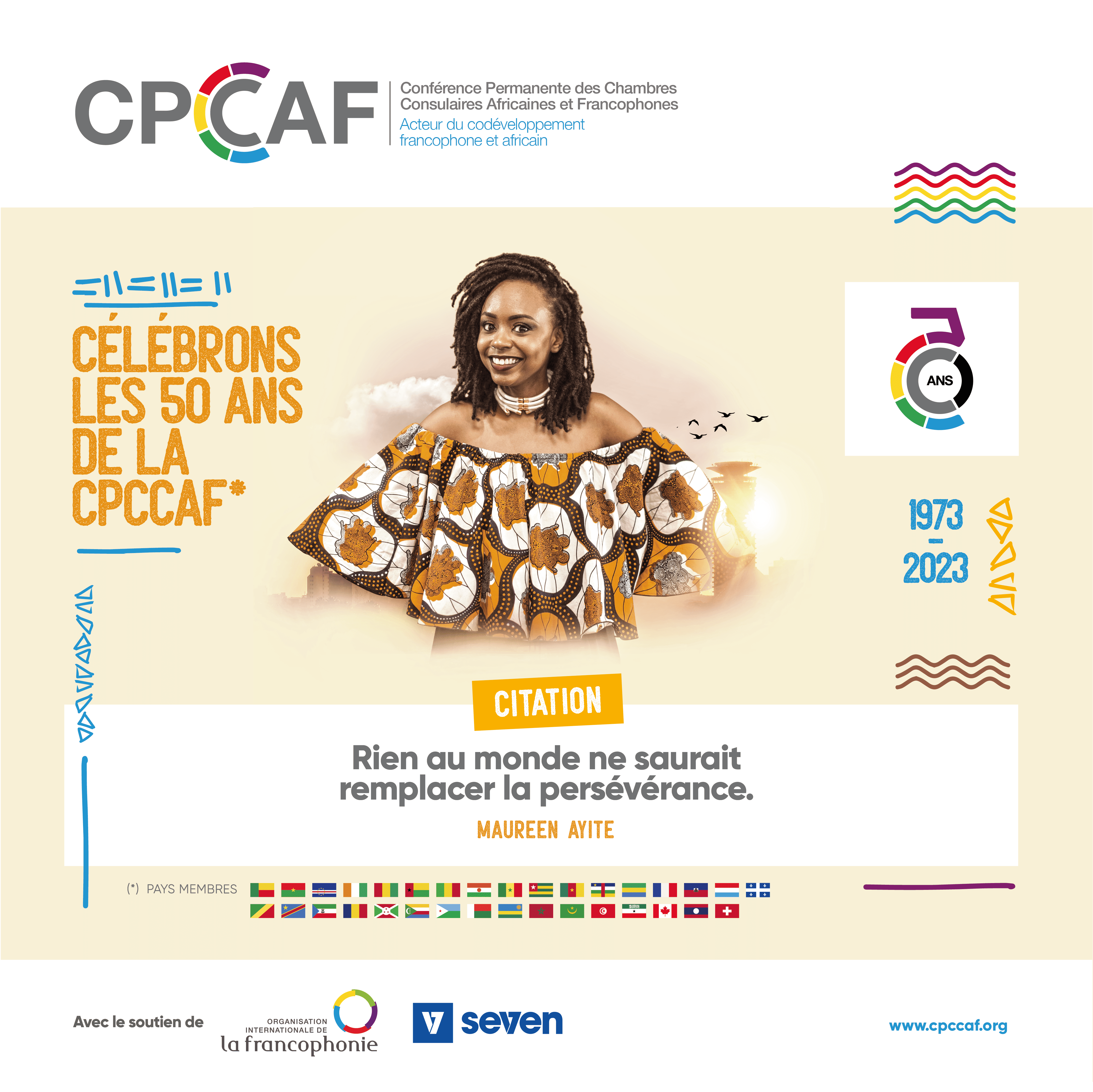 Livre anniversaire des 50 ans CPCCAF : Avec le soutien financier de l’Organisation internationale de la Francophonie (OIF), la Conférence permanente des chambres consulaires et organisations intermédiaires africaines et francophones (CPCCAF) a organisé dans le cadre de son cinquantenaire (1973 – 2023), du 24/04/23 au 20/10/23 un appel a contribution à destination des membres CPCCAF de la zone Afrique(26 pays africains – avec également Haïti – et impliquant 75 des chambres consulaires de son réseau) dans le cadre de la réalisation du livre anniversaire CPCCAF.